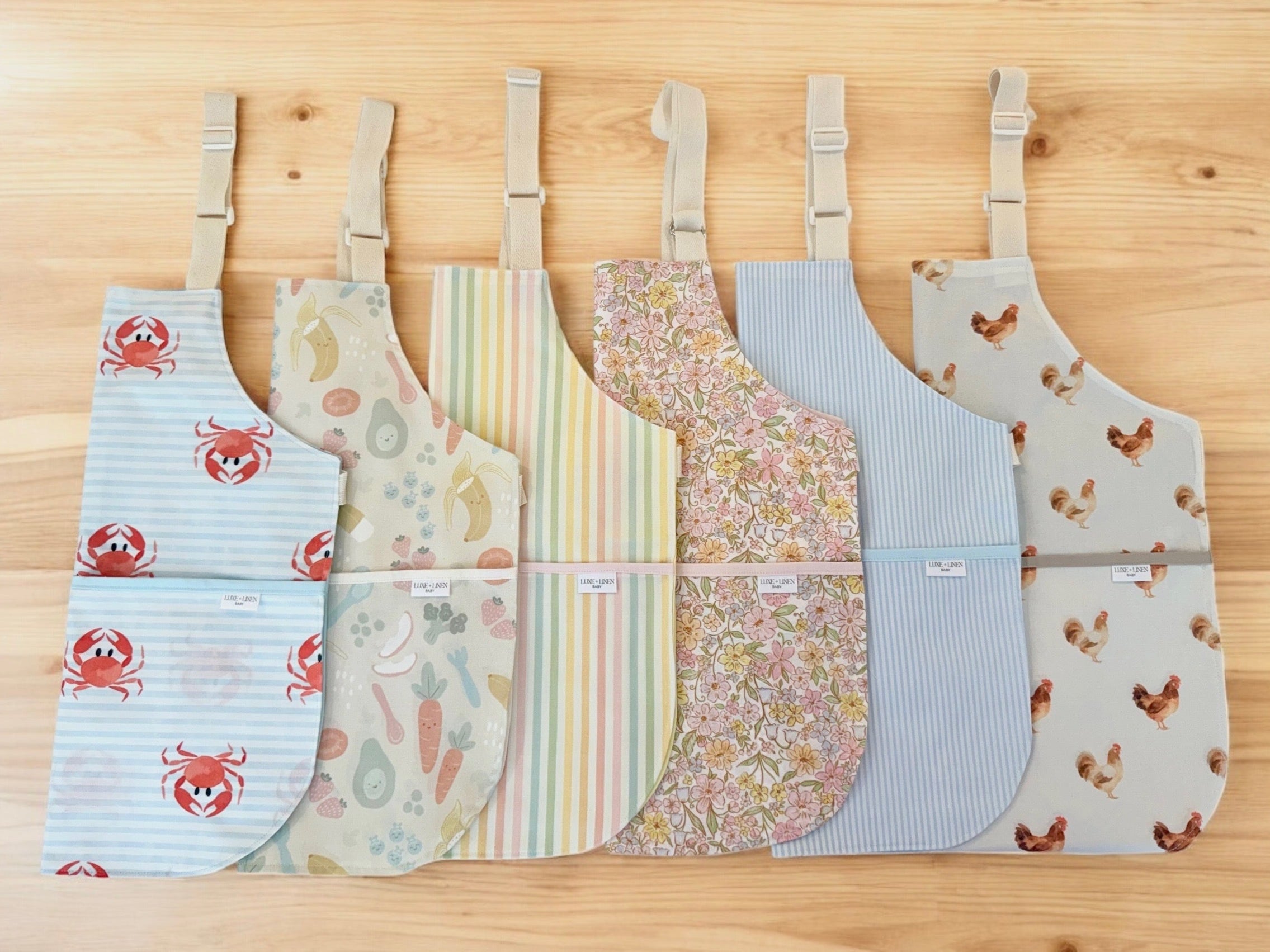 Let your little one's creativity shine with our playful, handmade kids aprons....