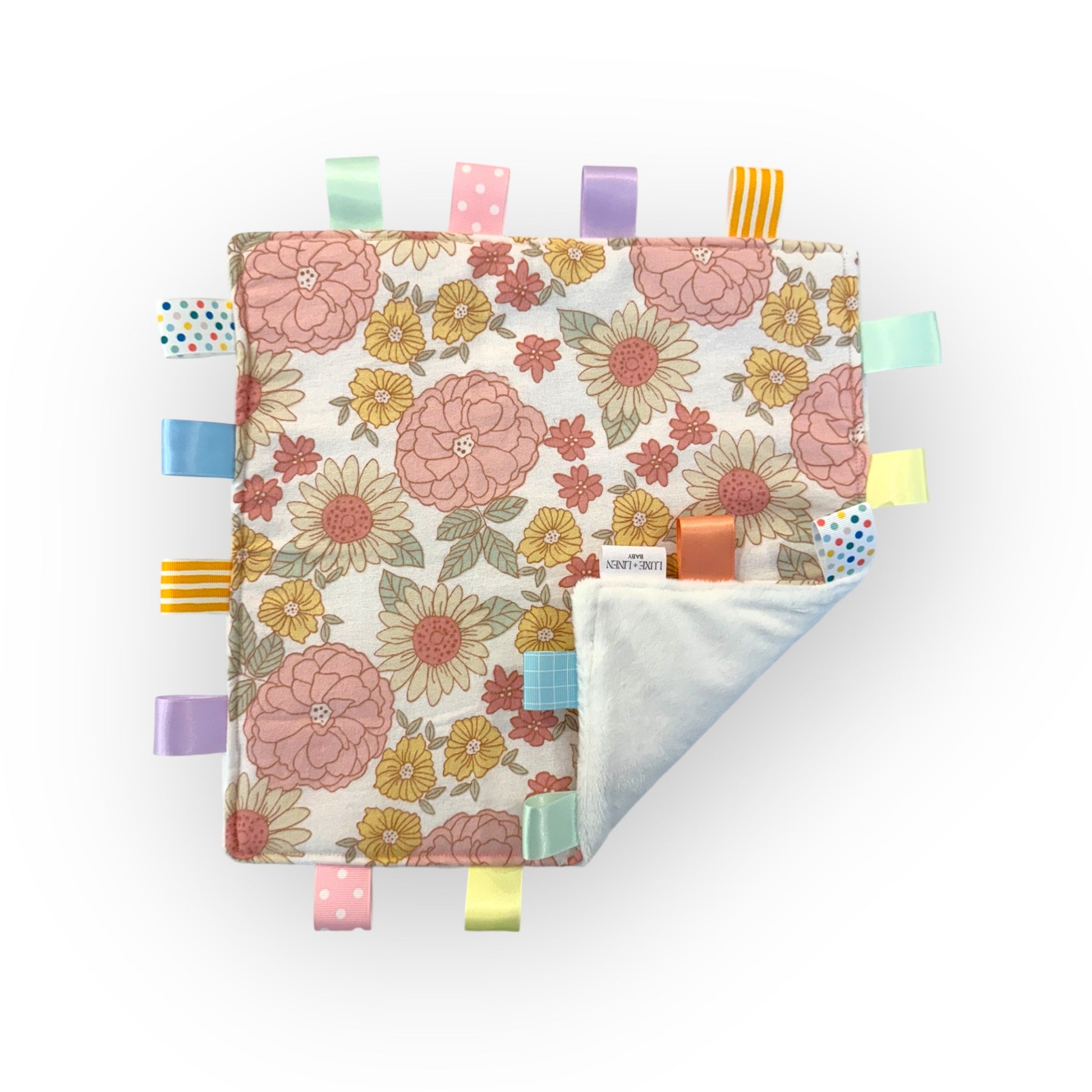 This sensory security blanket is the perfect companion for your baby's everyday adventures. Sensory tags around the edges encourage tactile development and soothes fussy moments.