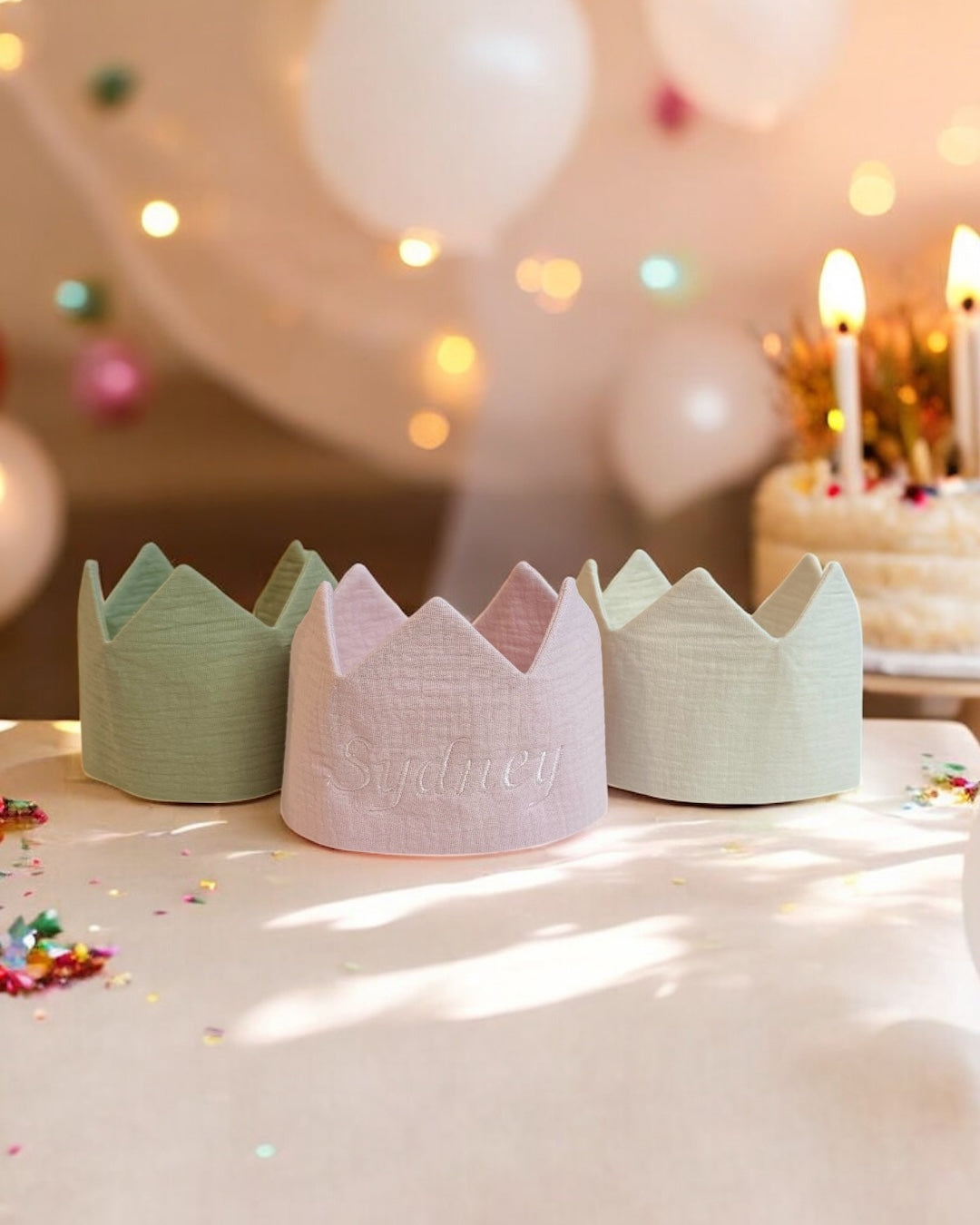 Make their birthday extra special with our handmade muslin birthday crown. This soft and adjustable crown is the perfect photo-ready accessory to celebrate each milestone.