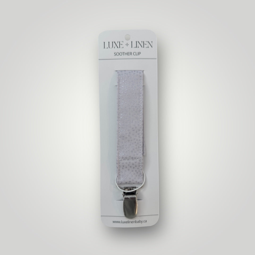 Keep your little one’s pacifier close and clean with our handmade cotton pacifier clip. Crafted from soft, durable cotton, it features a sturdy metal clip that attaches securely to clothing and an elastic loop that fits most pacifiers. A simple, stylish, and practical accessory for everyday use.