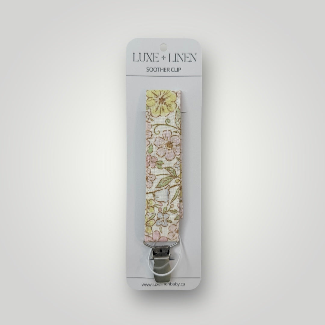 Keep your little one’s pacifier close and clean with our handmade cotton pacifier clip. Crafted from soft, durable cotton, it features a sturdy metal clip that attaches securely to clothing and an elastic loop that fits most pacifiers. A simple, stylish, and practical accessory for everyday use.