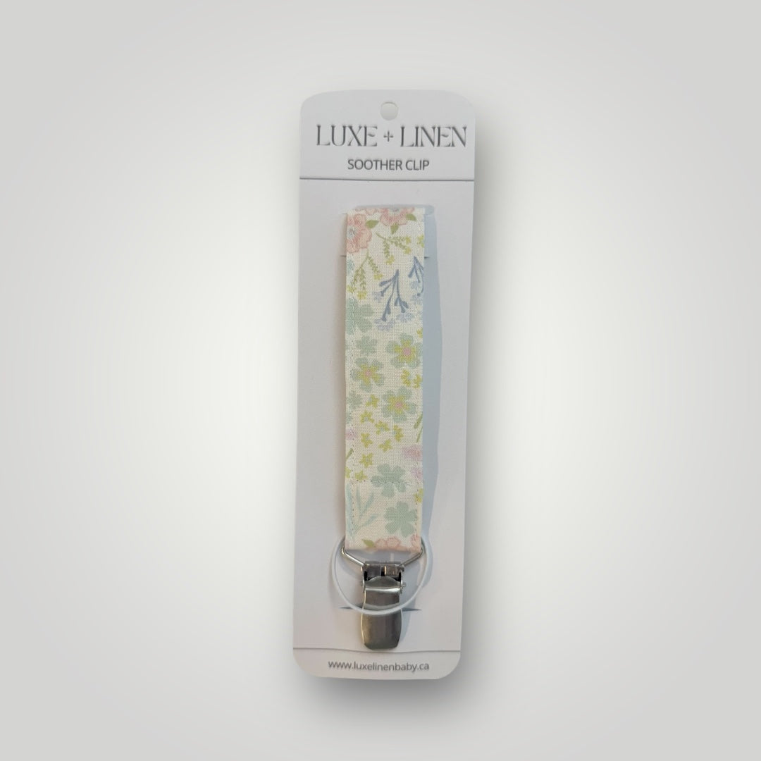 Keep your little one’s pacifier close and clean with our handmade cotton pacifier clip. Crafted from soft, durable cotton, it features a sturdy metal clip that attaches securely to clothing and an elastic loop that fits most pacifiers. A simple, stylish, and practical accessory for everyday use.